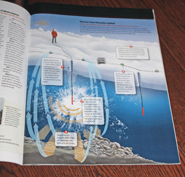 The September Edition of Up Here magazine, is currently on newsstands and includes an illustration that I completed. The illustration is about scientists drilling in the Arctic to learn about the terrain that resides below the sea ice.