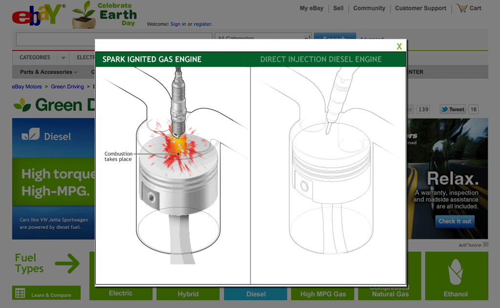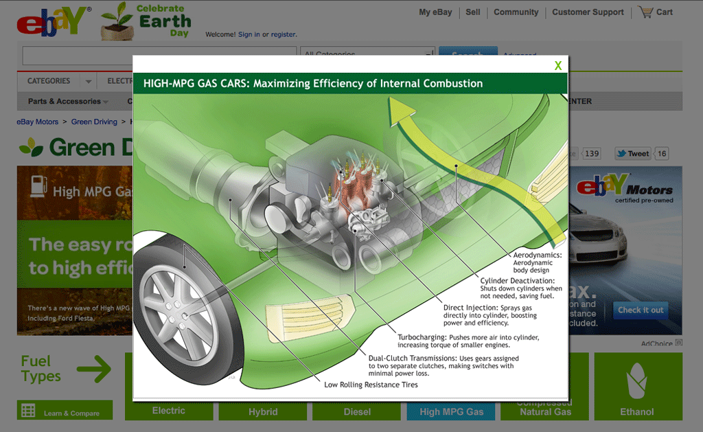 eBay recently launched a new webpage through eBay Motors entitled Green Driving that features information about various fuel efficient automobiles as well as a database of vehicles for sale.