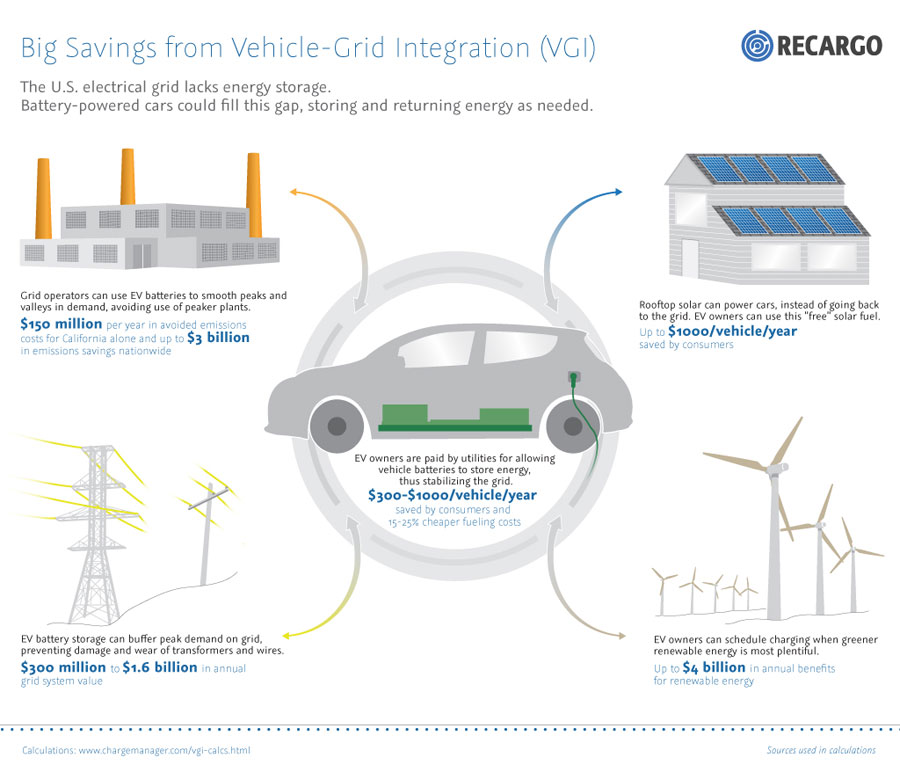 Working with Recargo, a software and services company that provides guidance to drivers and those in the industry of plug-in car technology, I designed an infographic that depicts the savings possibilities of vehicle-grid integration (VGI).