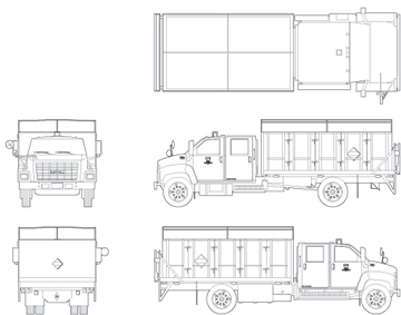 Next, I completed basic orthographics and isometrics for a dump truck. These illustrations will further be used as the basis for other illustrations in the manual. For example, indicating load in a dump truck. If a load is within 12″ of the top of ledge of the truck bed, then a cover must be used to secure the load.