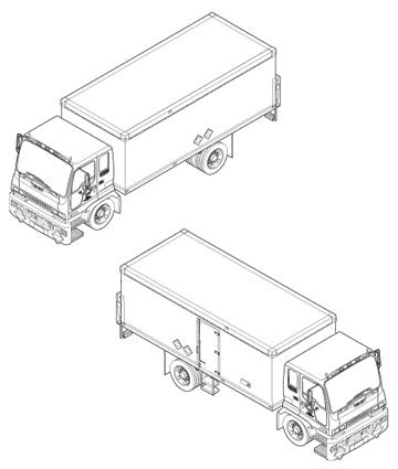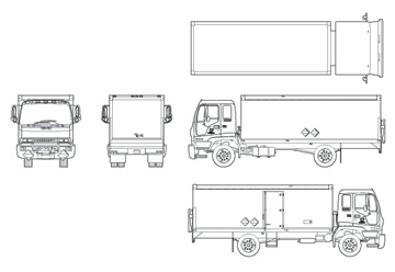 I have currently been working on some D-class vehicle illustrations for a manual that will inform drivers of generic information about these types of vehicles. Beginning with the basics, I have created orthographics of all sides of the vehicles. An orthographic depicts the an object from a straight-on view, usually producing top view, side views and end views.