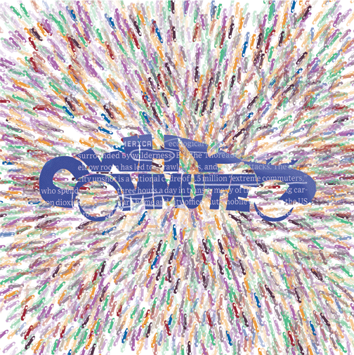 I chose to illustrate this phrase by creating an icon of a vehicle and depicting the masses of traffic to an extreme. It is almost overwhelming to the eyes. However, it allowed a simple question to form at the centre asking Why Commute? The image of why commute at the centre is a reflection of all the other vehicles moving towards a common centre.