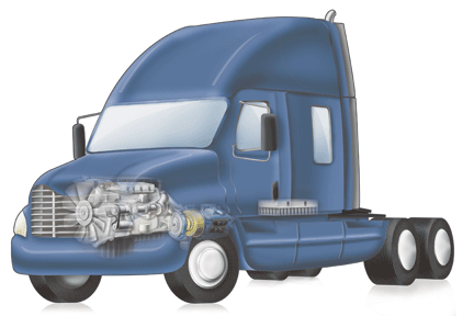 The following illustration is of a cab-over style vehicle. Quite literally, the cab where the driver and passengers sit is over the hood which holds the engine.
