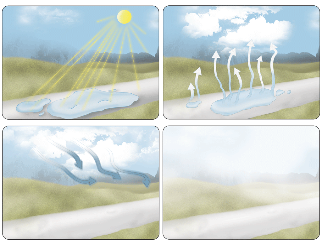 The above illustration represents how fog is created in geographic locations such as Peru, which is covered in fog half of the year.